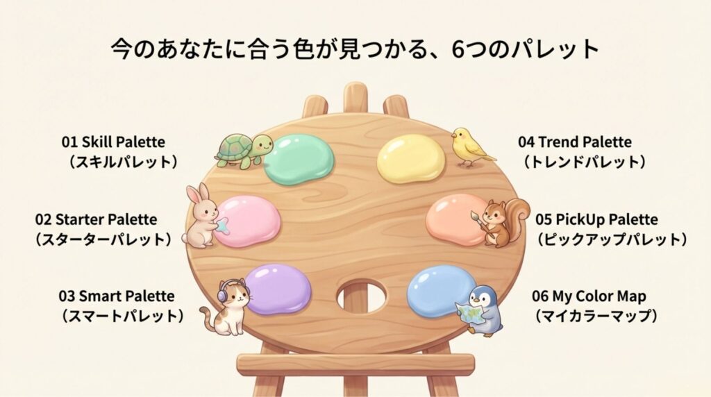 「何から始めればいいか分からない…」という方も、ここから自分にぴったりのPaletteが見つかるはずです。